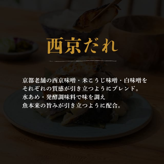 豊かな脂をまとった銀鮭を、白味噌をベースにした特製の西京だれにじっくり漬け込みました。